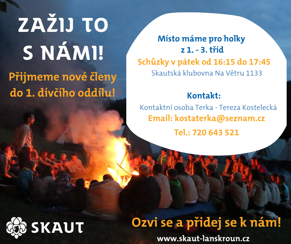 Zveme vás na zahajovací schůzku v pátek 11. 9. 2020 od 16:15 ve skautské klubovně Na Větru.