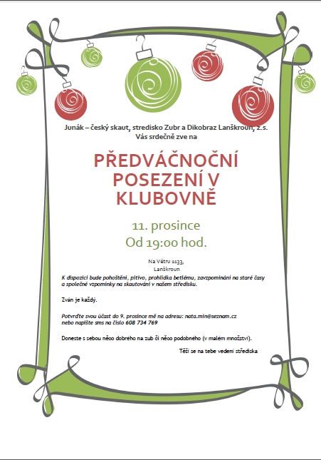 V pátek 11.12.2015 od 19:00 hodin v klubovně proběhne předvánoční posezení.