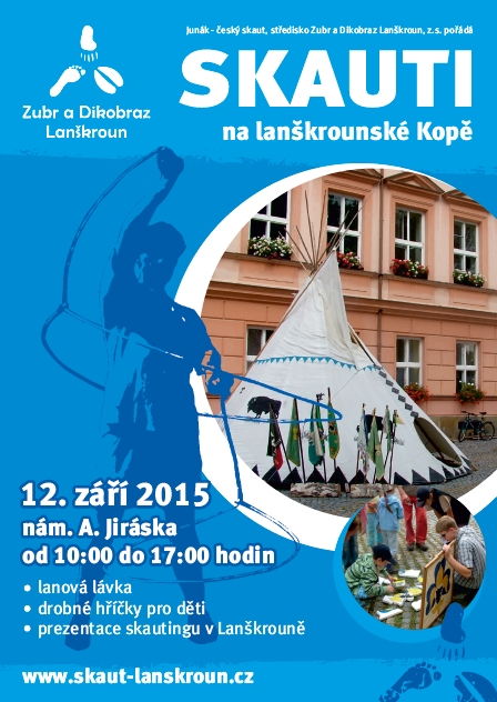 V sobotu 12.9.2015 na nám. A. Jiráska v Lanškruně proběhne již tradiční akce pro veřejnost „Skauti na Kopě“.