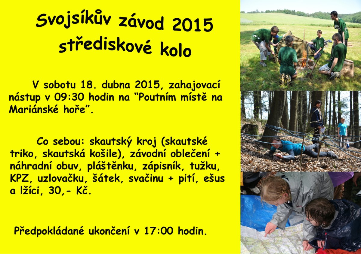 V sobotu 18. dubna 2015 se v okolí Mariánské hory uskuteční střediskové kolo Svojsíkova závodu.