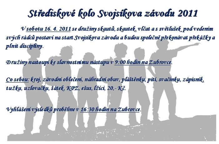 Úvod » Kalendář » Střediskové kolo Svojsíkova závodu 2011