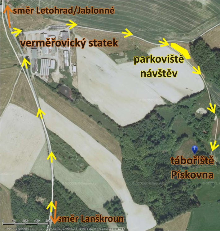Můžete přijíždět od 19:45 – pokud dorazíte autem, zajeďte cestu za statkem ve Verměřovicích a v místě, kde se cesta k táboru z polní asfaltky odděluje bude improvizované parkoviště. Na místě bude čekat někdo ze skautů, aby Vám poradil. Zbytek cesty – cca 500 m – je nutno dojít pěšky.