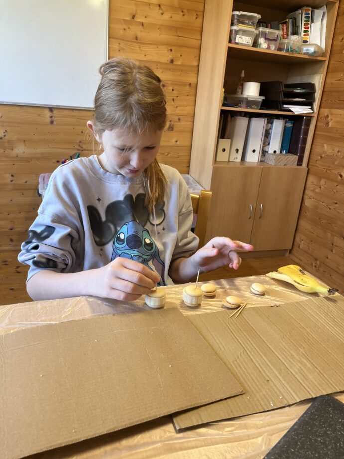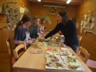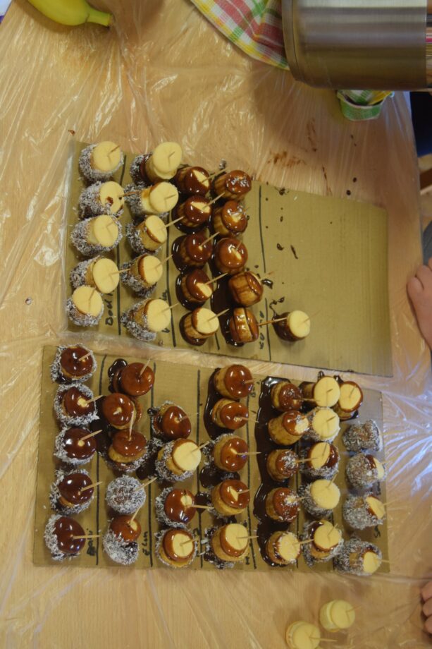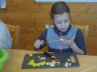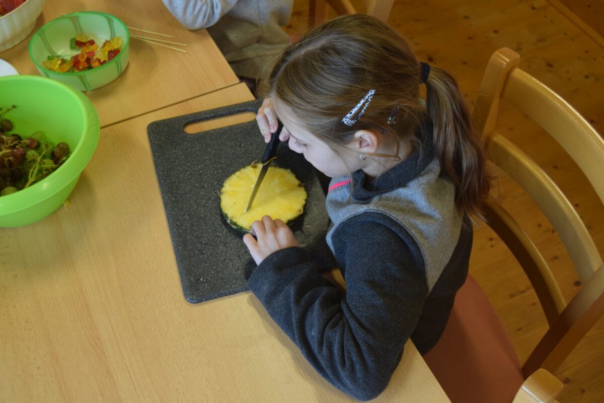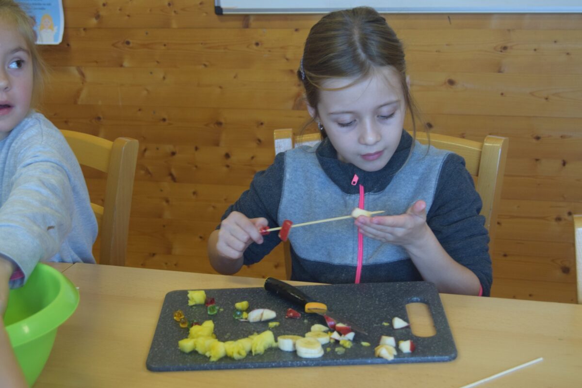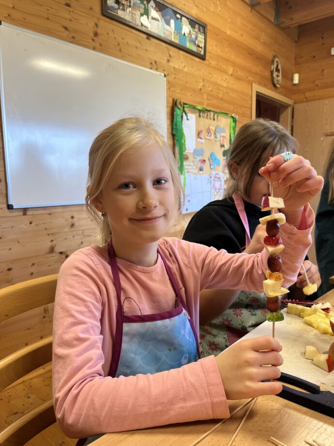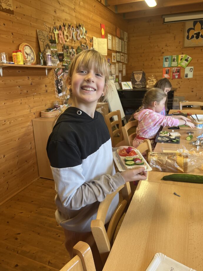 Na prvním stanovišti si světlušky připravovaly vlastní pizzu, od rozválení těsta až po zdobení oblíbenými surovinami. Následovaly ovocné špízy, kde si holky na špíz zdobily nejen ovoce, ale i sladké bonbónky. Třetí zastávkou byly chlebíčky, které si světlušky mohly vylepšit pomocí vykrajovátek a následně ozdobit zeleninou, sýrem a šunkou. Dalším stanovištěm byly banány v čokoládě, které měly velký úspěch. Poslední stanoviště patřilo tvoření z jedlé hmoty, kde si holky mohly vyrobit výrobky dle vlastní fantazie. Během dopoledne nechyběly ani hry a soutěže, při kterých si holky odpočinuly od pečení a tvoření. Na závěr jsme uspořádaly malou výstavu, kde jsme si mohly prohlédnout výtvory ostatních.