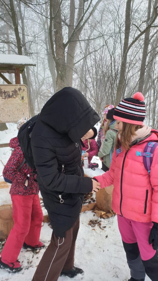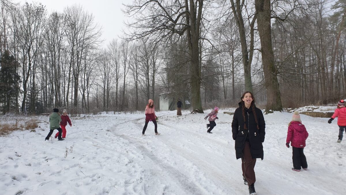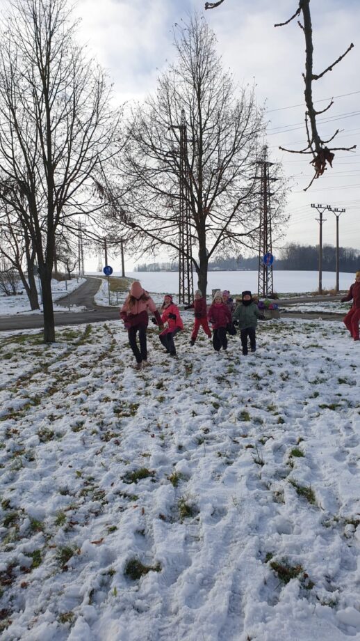 Dojely jsme tedy do Rudoltic, odkud jsme šly pěšky na Zámeček. Cestou jsme hrály spoustu různých her a holky i využily sněhu a hodně se koulovaly. Nakonec když jsme dorazily, zahrály jsme hru kde proti sobě soutěžily dva týmy, kdy tým Poslů přenášel lístečky, a tým Chytačů je chytal, a ty lístečky jim bral. Pak jsme se najedly a šly jsme stavět sněhuláky a dál se koulovat. Brzy nato jsme se pěšky vrátily do Lanškrouna a ukončily tím naši výpravu.
