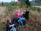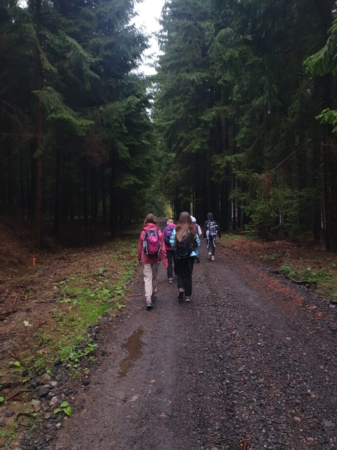 Cesta od rozhledny dál byla vyčerpávající víc než bychom čekaly, ale domů jsme se nějak dostat musely, takže jsme pokračovaly dále a dále. Na krásném místě v lese jsme snědly asi všechny naše zásoby jídla. Po obídku jsme vytvářely land art, což je vytváření zajímavých výtvorů z věcí, které najdeme v přírodě. Jedna skupina vytvořila přírodní záchod a ta druhá přitáhla větev, kterou našla ulomenou na zemi a řekla, že to je zároveň strom a zároveň místo na provádění tanečku, který vypadá… zajímavě.