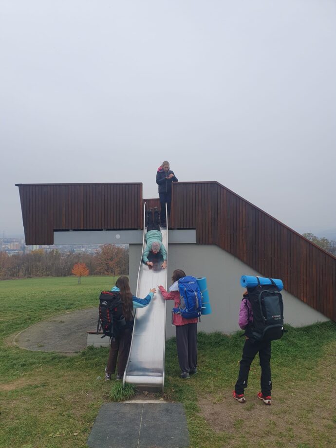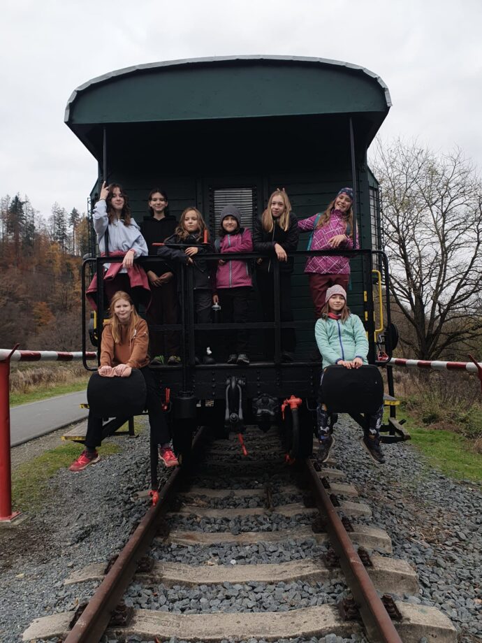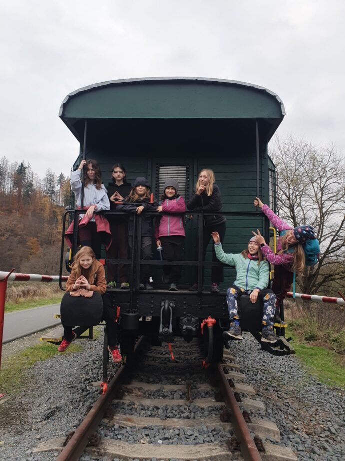 V pátek 31. 10. 2025 jsme ve složení: Majda, Hůlka, Fíbí, Vendy, Žabka, Zuzka, Jolanka, Poppy, Pepin a Zoubek, nastoupili do vlaku, který nás zavezl do České Třebové. Tam jsme přestoupili do dalšího vlaku, který nás konečně dovezl do naší cílové destinace – Zábřeh.