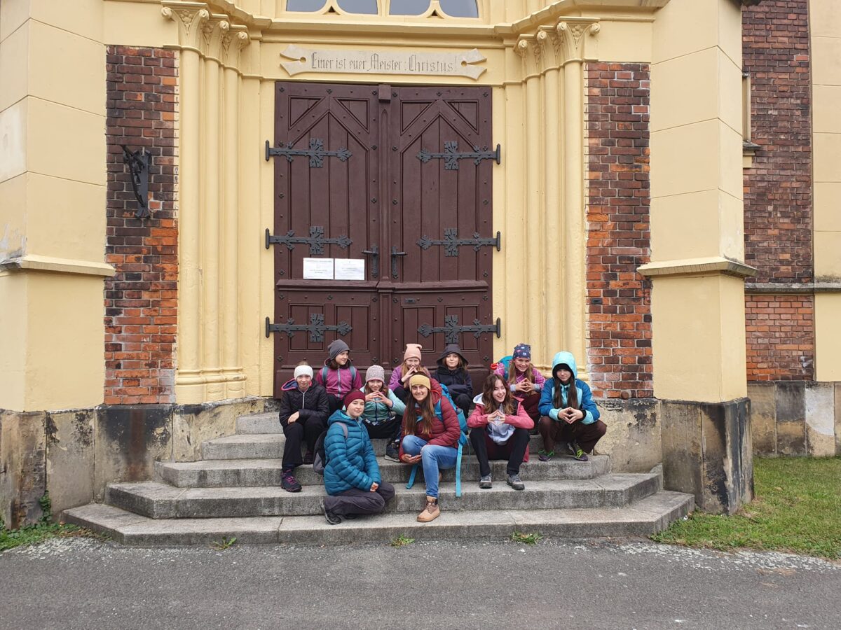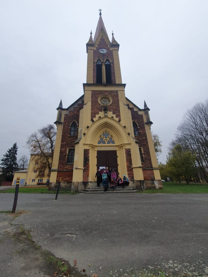 Následovala prohlídka kostela sv. Jana Křtitele. Zjistili jsme, že byl Honzík jako malý kluk hodně nemocný, a proto ho jeho rodiče nechali rychle pokřtít. Potom jsme vyšli ze Zábřehu a šli jsme do velkého kopce. Když jsme na kopec vyšli, zjistili jsme, že tam je ohrada z křoví. Šli jsme podél ohrady asi 0,5 kilometru a vylezli jsme v Kosově kde byla cedule kde stálo že je tam býk.