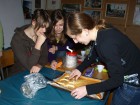 V sobotu 20. listopadu jsme se sešly k příležitosti pořádání několikátého ročníku Zlaté vařečky a Broučka cukráře. Skautky, které spadají do kategorie Zlaté vařečky, měly za úkol uvařit bramboračku a salát – ať už sladký či slaný. Světlušky (Brouček cukrář) vyráběly dortíky a tvořily z marcipánu. I přes to, že se nynější skautky účastnily Zlaté vařečky poprvé, jejich pokrmy chutnaly víc než dobře. A navíc – všechny jsme přežily! (Což je víc než dobré znamení :)) Nakonec vyhrála družinka Želv ve složení Míša, Sandra, Šmudla, Pája. Vyhrála ale i družinky Divokých fčel ve složení Áďa Hacurová, Anička, Tinky, Léňa, Zlatka a Kiki Konečná. A Broučka cukráře vyhrála Adélka Fuglíčková.