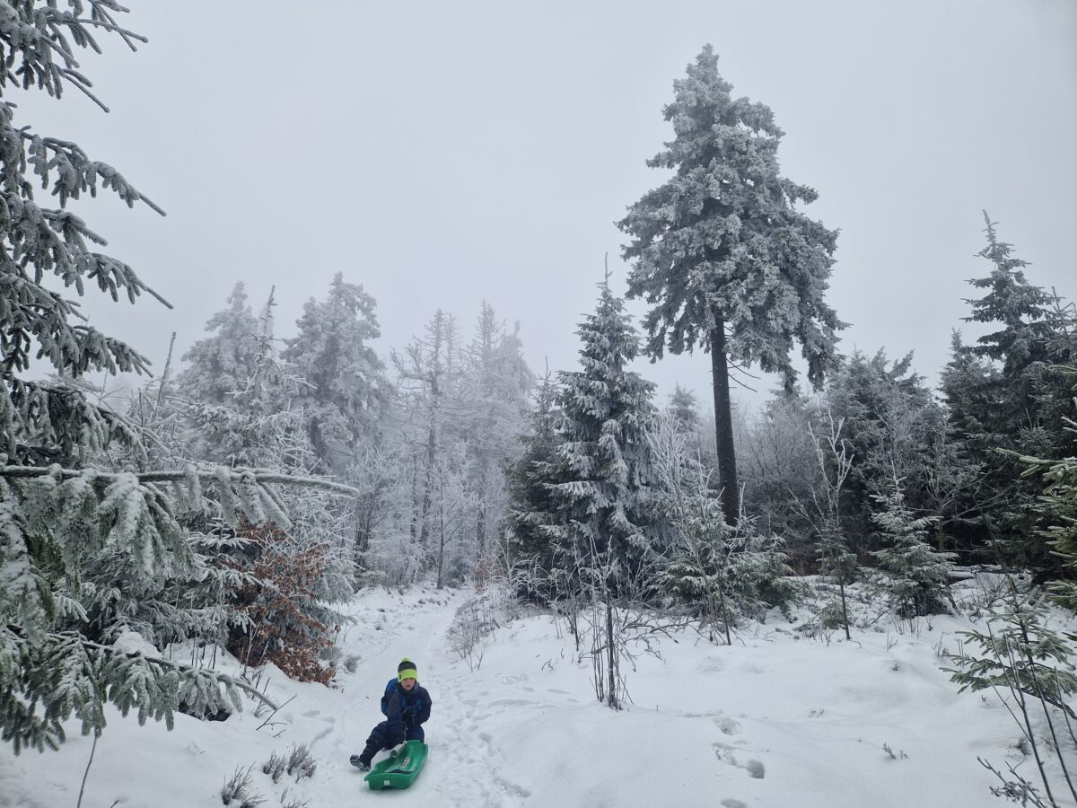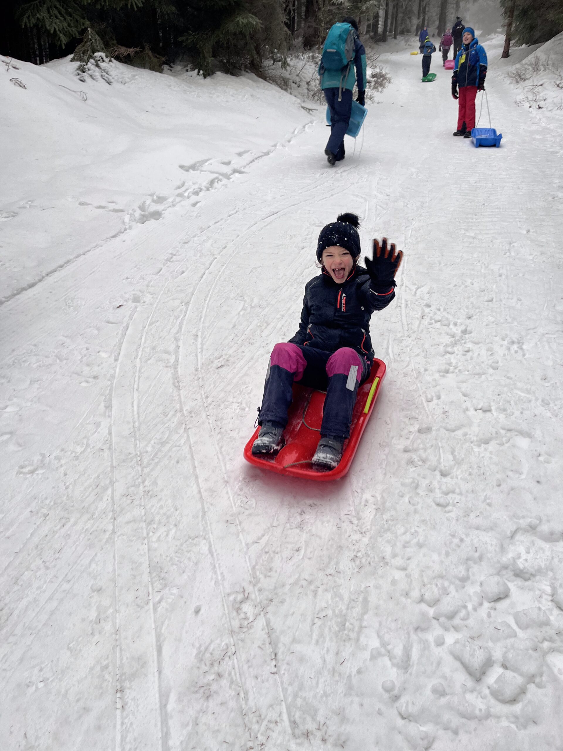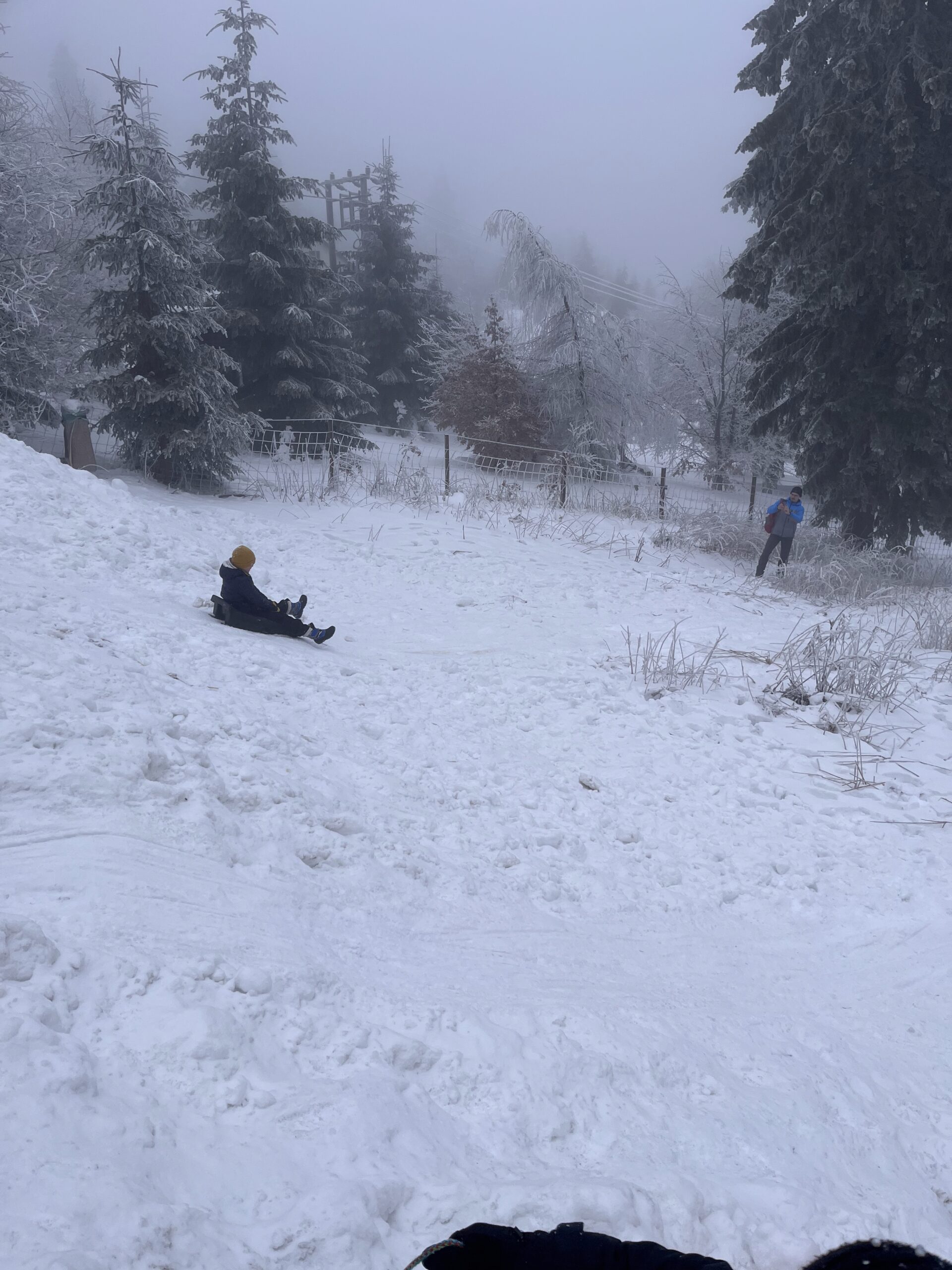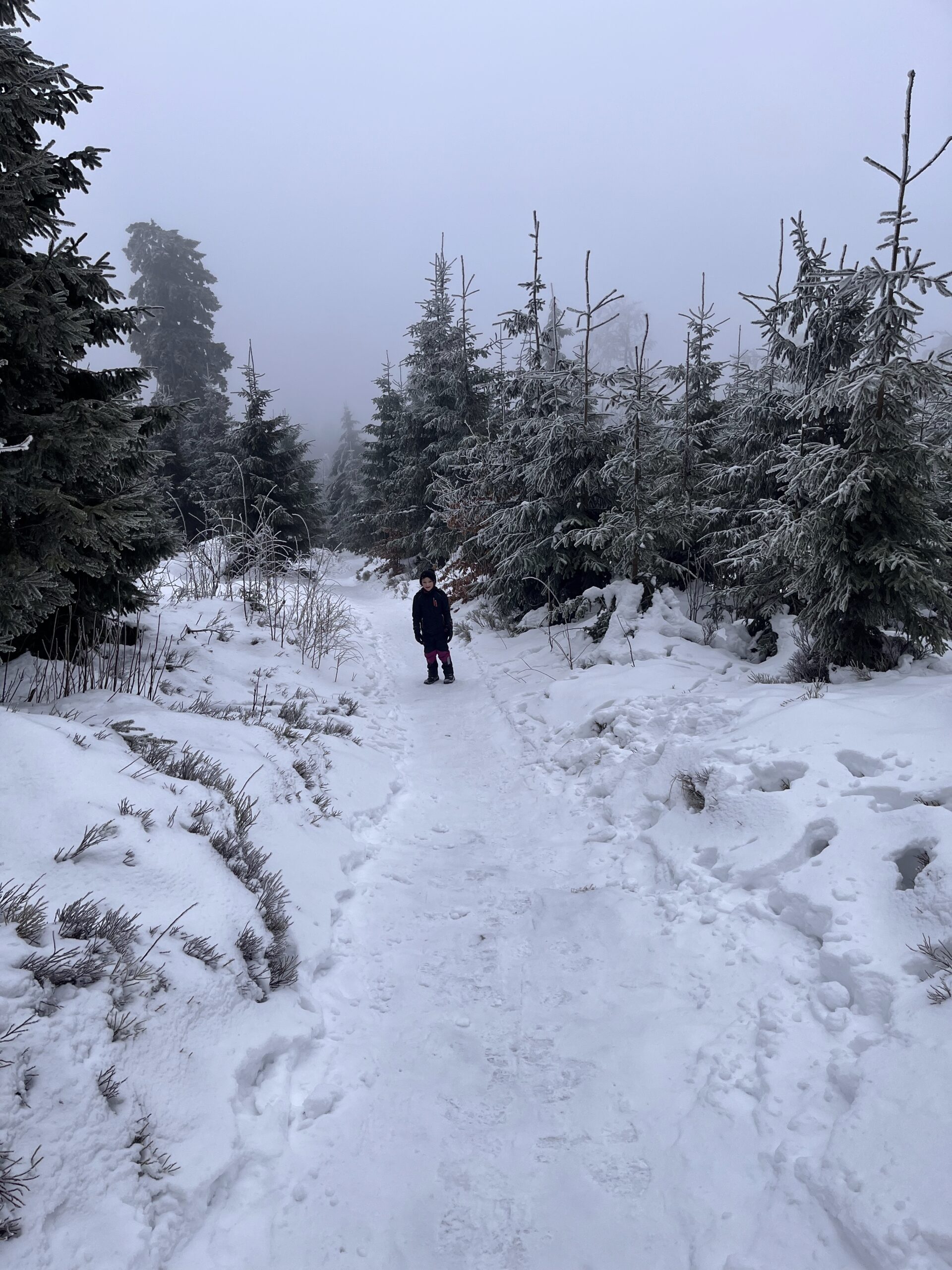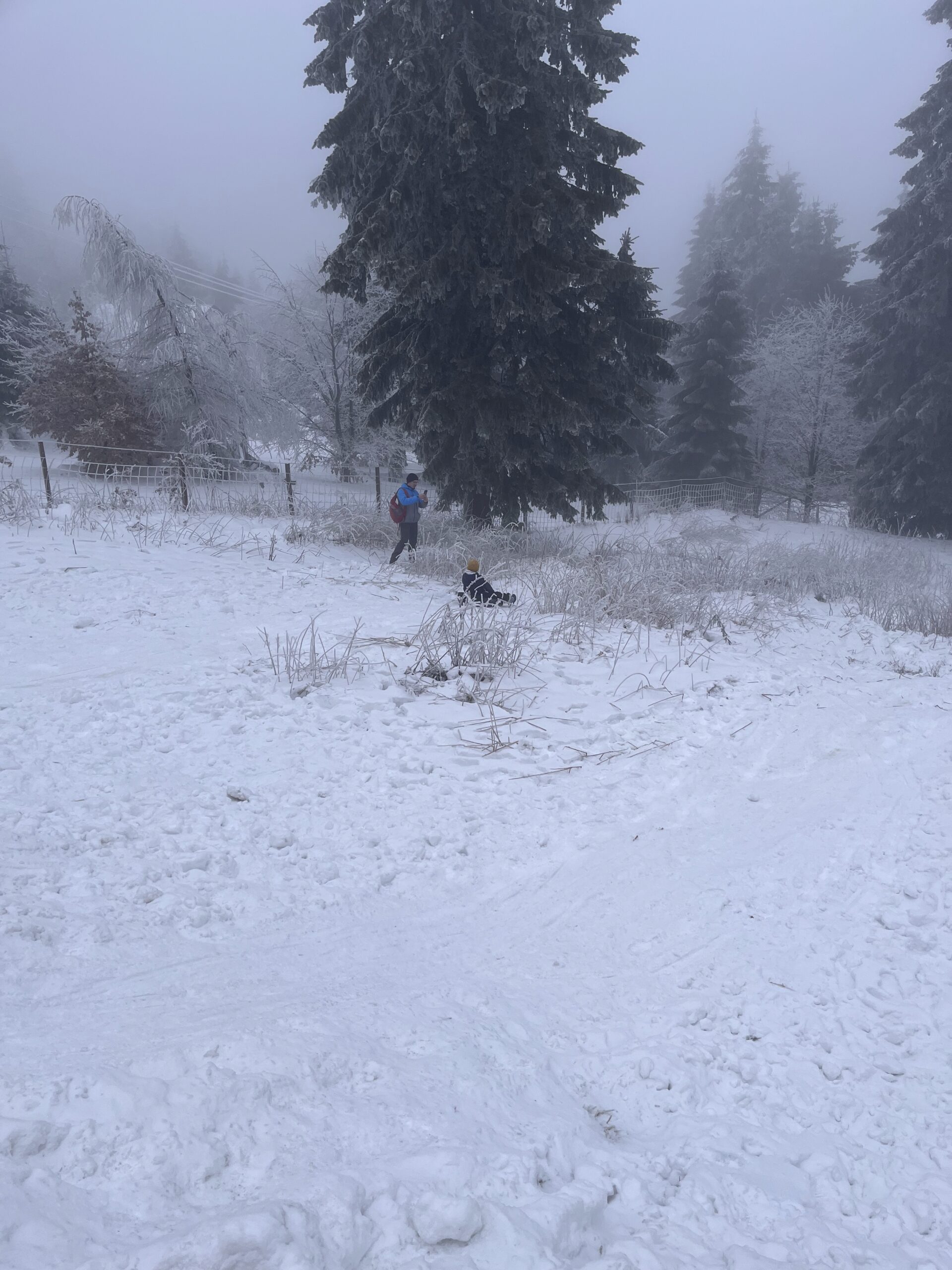 V sobotu 24. ledna 2026 jsme vyrazili na naši zimní výpravu. Obloha sice nebyla přímo azurová, sněhu ale bylo dost, takže jsme s sebou vzali i boby a vyjeli jsme auty od klubovny směre Suchý vrch. Zaparkovali jsme na Červenovodském sedle a zahájili výstup na vrchol. Po cestě jsme si užili dostatek sjezdů a výjezdů, alespoň první část cesty velmi přála bobování. Na Hvězdě proběhlo první občerstvení. Další výšlap byl poněkud obtížnější, protože cesta dále byla více kamenitá a také o dost strmější. Došli jsme ale všichni v pořádku až na vrchol a ke Kramářově chatě. U chaty byl také hezký kopeček, dalo se tedy krásně bobovat i zde. Nakonec jsme se šli všichni občerstvit do místního bufetu, udělali vrcholovou fotku a zahájili jsme sestup dolů. Cesta dolů ke Hvězdě se ukázala jako dost obtížná, protože se nedalo pořádně sjíždět kvůli kamenům a nerovnosti na cestě. Ale od Hvězdy dolů byla cesta krásně široká a plná sněhu, takže konec výpravy byla jedna velká bobovací zábava (nevěřili byste, jak rychle se dá vyběhnout od sedla až ke Hvězdě). Když jsme se dost vyjezdili, nasedli jsme opět do aut a dorazili šťastně až domů.
