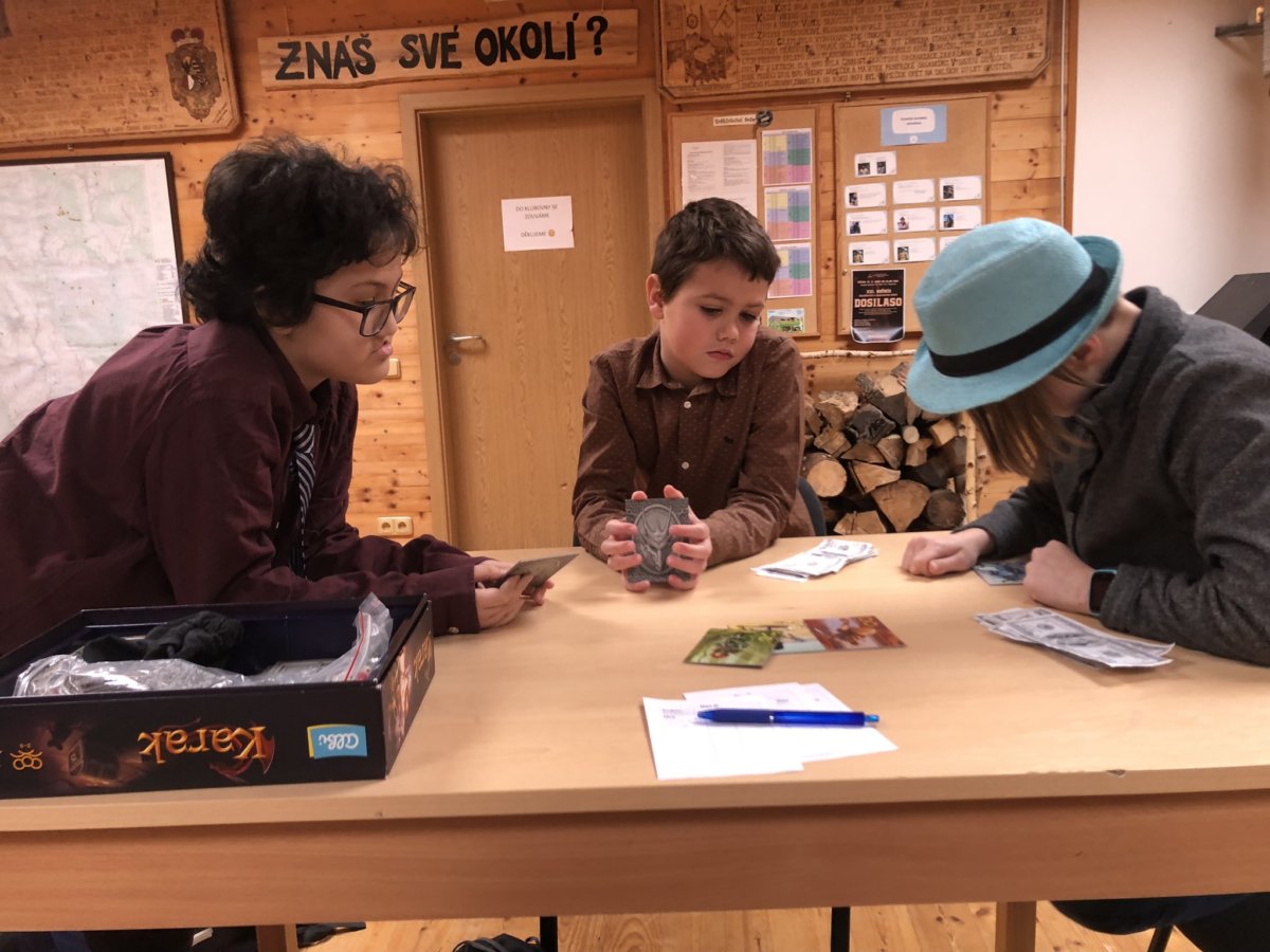 Společně jsme hráli deskovky, oblíbený byl kostkový Bang!, Karak i Prší. Některé skupinky naopak nepustily karty Výbušných koťátek za celou dobu z ruky. Na závěr jsme hráli i Kámen, nůžky, papír. Vedoucí si zahráli velkou jengu.