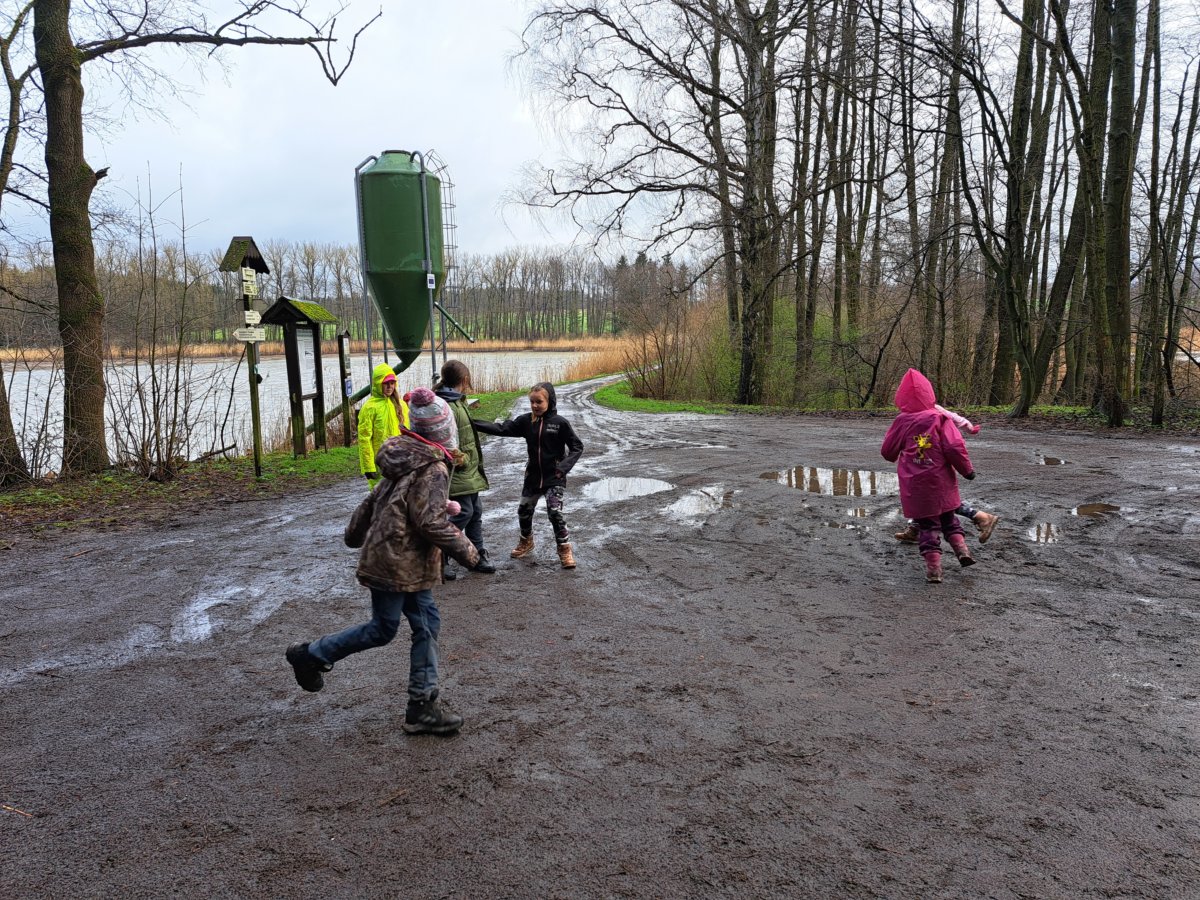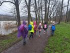 Cesta nás vedla podél Dlouhého rybníku, u kterého jsme se seznámily s místní krajinou, rostlinami a živočichy. Kousek dál jsme si mohly vyzkoušet i pohled z výšky na ornitologické pozorovatelně. Ten nám poskytl výhled na okolí i z jiné perspektivy. Dále jsme pokračovaly kolem rybníku s názvem Olšový, kde právě proplouvaly dvě labutě. Počasí nám moc nepřálo, a tak přišla vhod hra na pilné včely, kde se holky pořádně zahřály. Po zahřátí jsme pokračovaly dále až na místo původního srazu.
