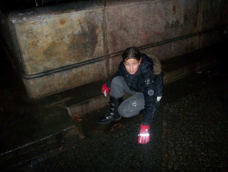 V 18:30 hodin jsme se obě mafiánské rodiny spolčili a honili jsme Kápa, který chodil po Plácku (náměstí J.M.Marků) a jeho blízkém okolí a hledal úkryt kam dát kufřík s mafiánským jměním (sladkosti) :-). My jsme ho sledovali, ale nenápadně, protože když nás zahlédl, střílel po nás. Ne doopravdy, ale jako. Místo výstřelu říkal: pif paf. Mě se naštěstí všechny kulky vyhýbaly. Nakonec si Kápo vyhlédl úkryt a nechal tam kufřík se sladkostmi a 20ti tisíci dolary. Kufřík našli a vzali mafiáni z Dolního města.