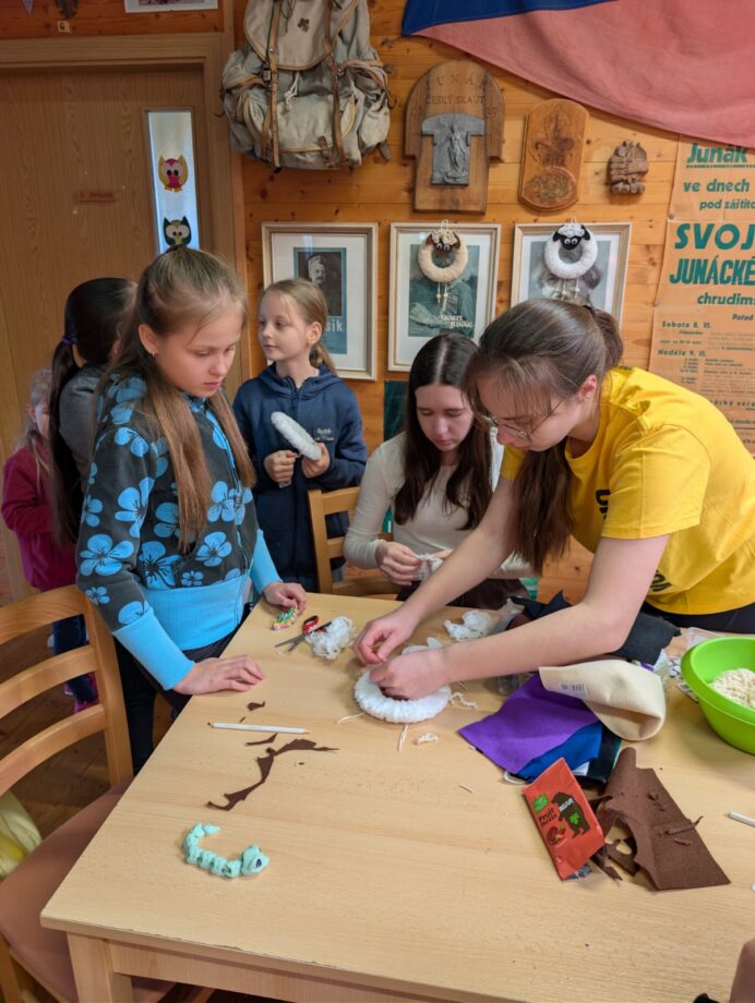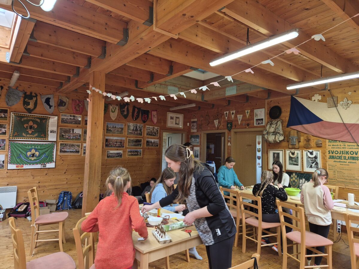 V sobotu 14. 3. se již tradičně sešla děvčata ze 37. oddílu na NáRuČi (Nálož rukodělných činností), aby si vyrobila jarní dekorace. Celkem bylo šest stanovišť, na kterých si mohly holky vyzkoušet různé techniky a odnést si tak domů rozmanité výrobky.