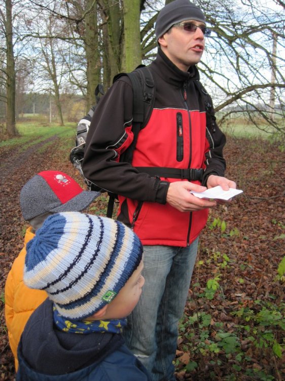 Dvacátého třetího listopadu vyrazila hnědá šestka na svoji první výpravu. Sešli jsme se u klubovny a vyrazili směr lanškrounské rybníky i s maminkami a tatínky. První zastávka byla v lesíku Na střelnici, kde bylo potřeba s pomocí rodičů (někdo i bez ni) sundat ze stromu bonbon. Pak nás šipkové značení zavedlo na koupaliště. Tam se odehrál souboj rytířů na koních, s papírovými meči. Pak následovaly další úkoly, jako nošení vody na lžíci nebo schovka za pochodu. Všechny příjemně posílil poklad nalezený u pramene a pak už jsme všichni vyrazili směr domov.