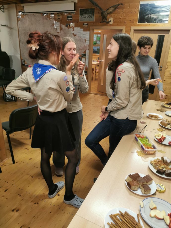 V sobotu 21. října 2023 v pět hodin jsme se již podruhé sešly na Lístečkovou party – setkání současných a bývalých vedoucích 37. oddílu. Dozvěděly jsme se o táboře v roce 1969, na kterém tábořilo 300 skautů z lanškrounského, letohradského a žambereckého střediska, a také o prvních táborech 2. a 3. oddílu po Sametové revoluci. Velice nás zaujaly zábavné historky ze skautského života zahrnující třeba modlení růžence ve vlaku, povodně nebo vznícení vlasů.