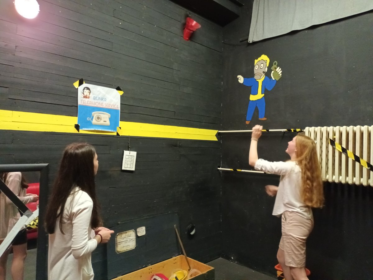 Anička a já (vedoucí Vé) jsme navečer v onen den dé vyzvedly na hlavním nádraží v Brně Skříťu, Marušku, Kiki, Ritu a Majdu, abychom si mohly takzvaně vyhodit z kopýtka. Zamířily jsme na únikovou hru BUNKR 13. Naším úkolem bylo za 75 minut vyřešit někdy opravdu složité úlohy a zastavit tak únik radiace. To se nám nakonec podařilo, ale asi až za 76 minut, kdy už jsme všechny byly pomyslně po smrti. Nutno ale dodat, že mladý zaměstnanec únikovky nás po naší zdánlivé poslední hodince pochválil za hbitost a logickou zdatnost. Věrohodnost a kredibilitu těmto slovům dodala prostá informace – být přibližně o pouhopouhých dvacet minut rychlejší, trhly bychom rekord.