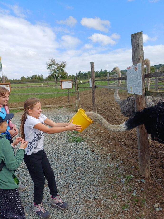 Vlaštovky a Sýkorky na výpravě navštívily pštrosí farmu