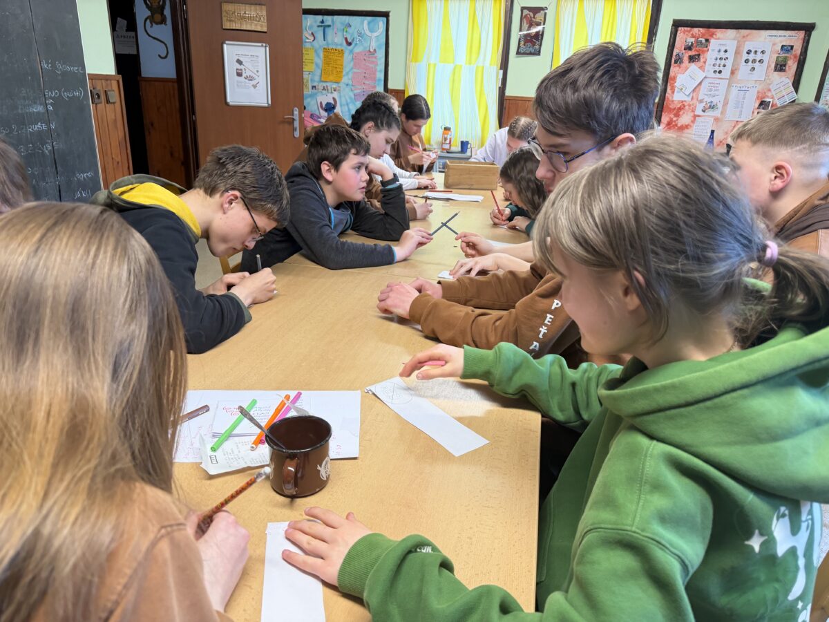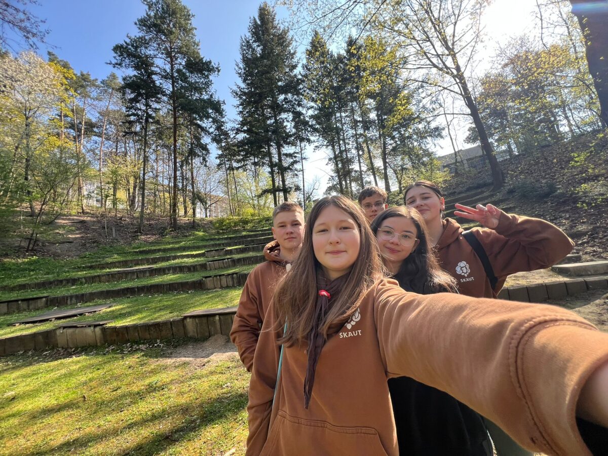 Budíček, rozcvička… taková skautská klasika, která musí byt zmíněna, ale poté se skauti a skautky vydali do okolí Lesné. Cílem bylo projit 9 stanovišť a splnit u nich úkol, za každé splnění skupinky dostaly písmeno, ze kterého vyluštili odpolední program. “Líbilo se mi, že jsme mohli jít sami a vlastně jsme došli i jinam než kam to vedoucí plánovali. Bylo to vtipné” doplňuje Žabka. Překvapilo nás že skupinky nachodily téměř 10 kilometrů, počítali jsme tak 6.