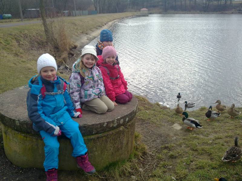 Dne 22.2.2014 se družinka Pomněnek ve složení Filípek, Eliška, Anežka, Gábinka, Anička, Naťa, Chůvka a Martinka, která se k nám přidala ze družinky Sněženek, rozhodla vyrazit na výlet. Bylo krásně a tak byl den stvořený pro procházku. Od radnice jsme vyráželi kolem 13:00 směrem k rybníkům. Cestou jsme si zvládli zahrát několik her, posvačit, ale také pozorovat přírodu a zvířata. Cesta byla daleká, ale zvládli jsme se vrátit do klubovny, kde naše výprava pokračovala. V klubovně jsme si vyrobili krásné sáčky na nejrůznější poklady a poté jsme se vrhli na vaření palačinek. Všichni se podíleli na přípravě, o to víc nám palačinky chutnaly. Stačili jsme dojíst a trochu poklidit a už bylo 18:00 a byl čas vyrazit k domovům.